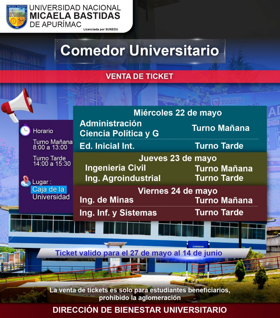 Venta de Tickets del Comedor Universitario para estudiantes seleccionados