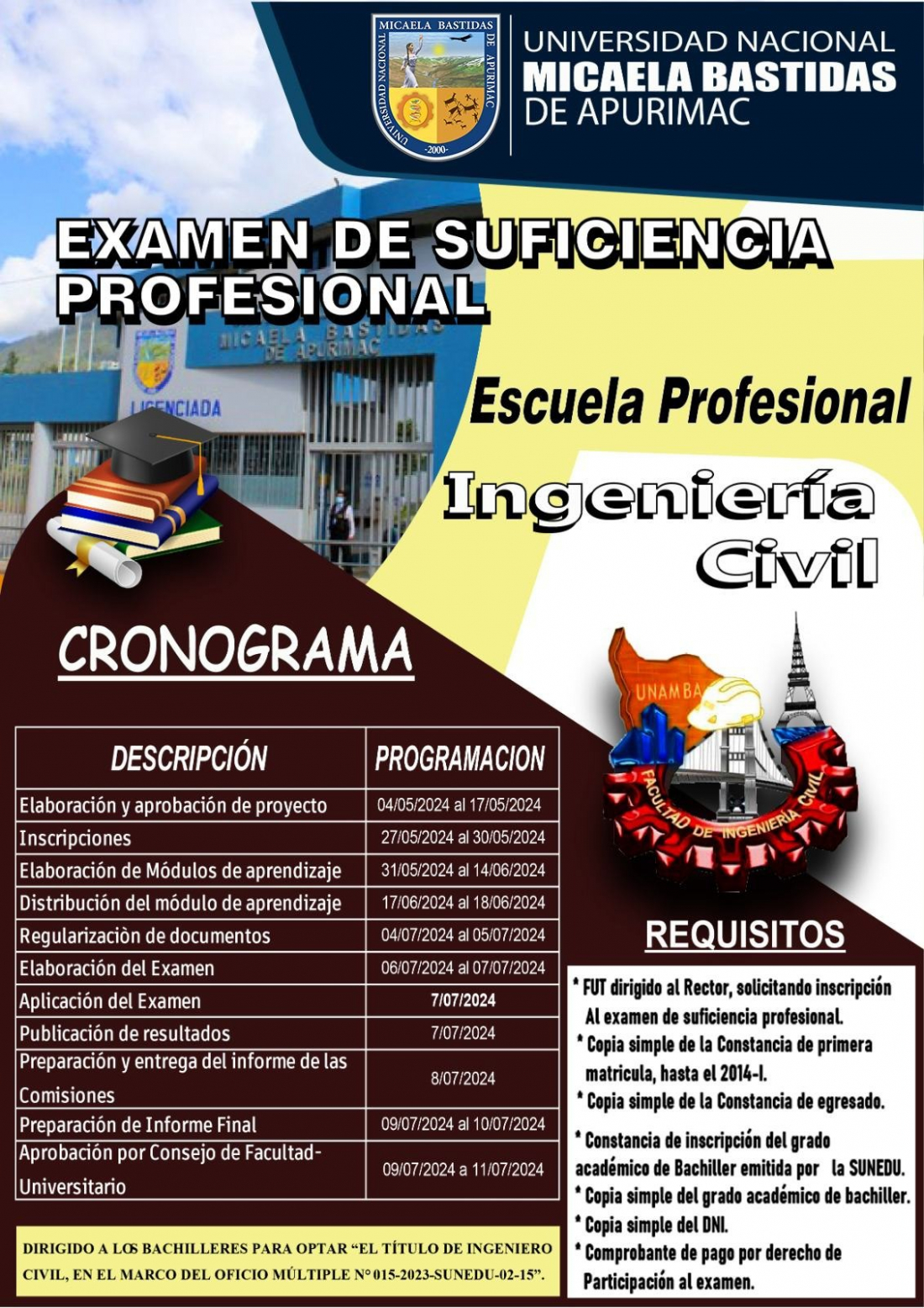 Convocatoria a examen de suficiencia profesional para optar el título profesional de Ingeniero Civil