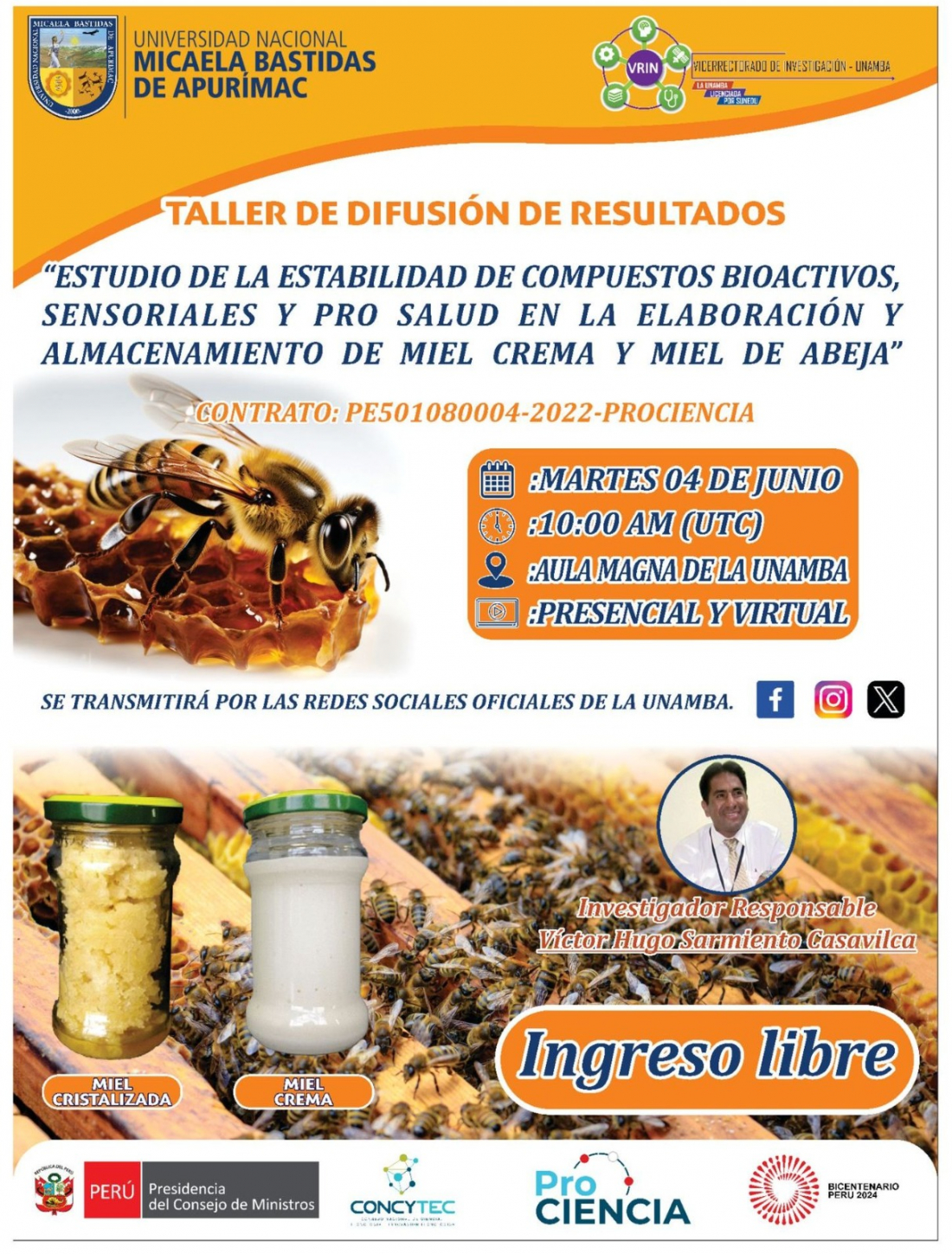Estudio de la estabilidad de compuestos bioactivos, sensoriales y pro salud en la elaboración y almacenamiento de la miel crema y miel de abeja