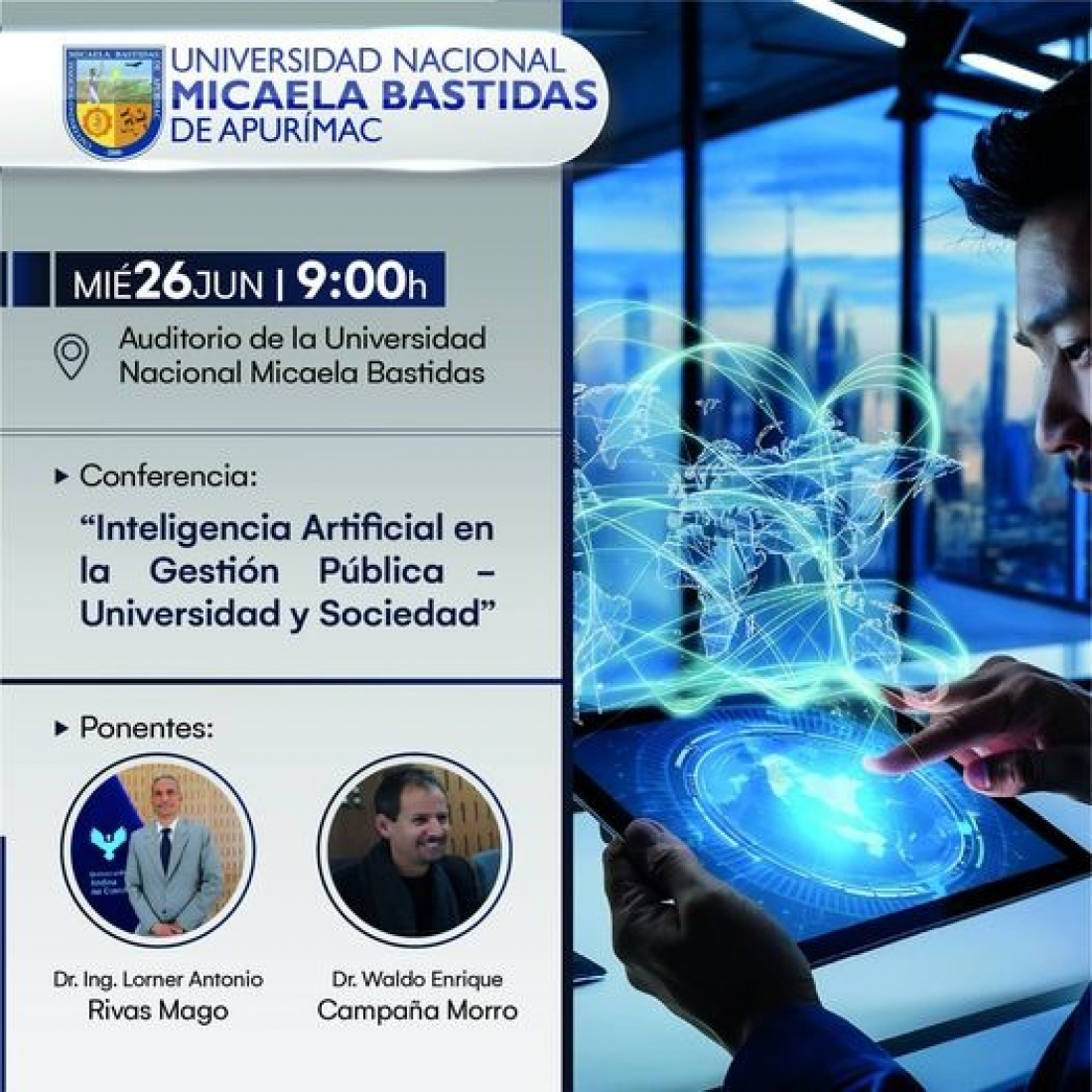 La UNAMBA y la Universidad Andina del Cusco invitan a la Conferencia Inteligencia Artificial y Marketing Sensorial, así como a la presentación del livbro Liderazgo y Paradigma del Dr. Emeterio Mendoza Bolívar.