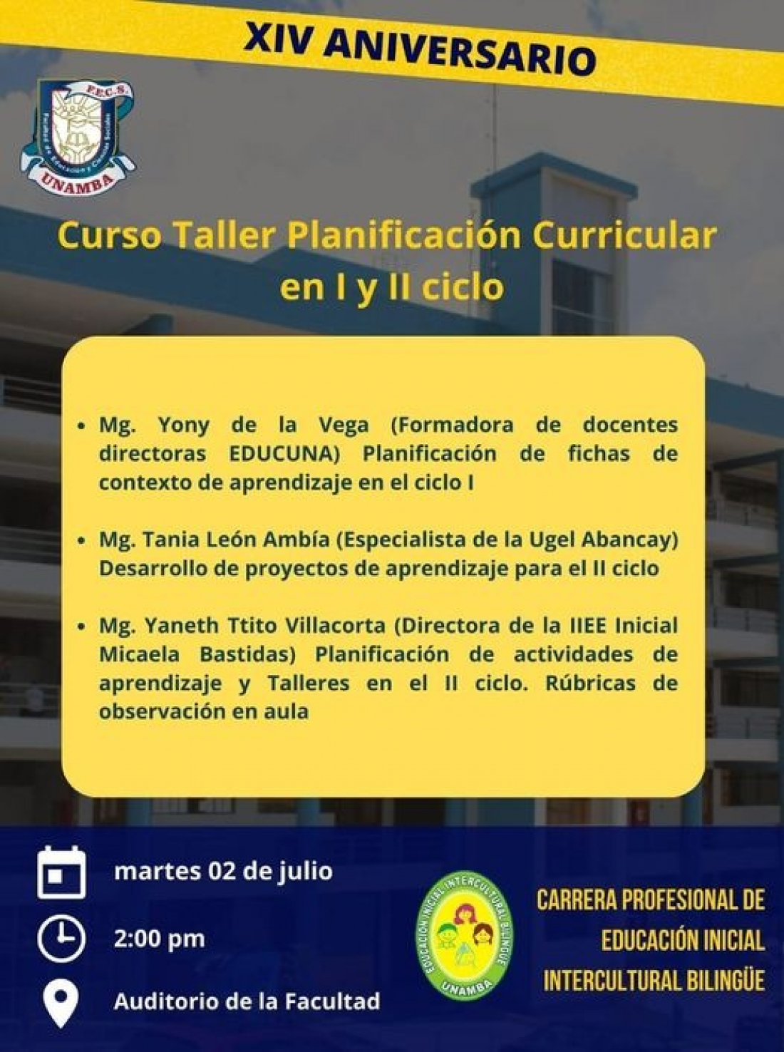 La escuela profesional de Educación Incial Intercultural Biligue realiza diferenes actividades académicas por el XIV aniversario de la Facultad de Educación y Ciencias Sociales