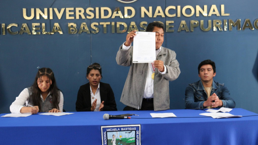 De acuerdo al cronograma de Elecciones Generales Universitarias UNAMBA 2024, el martes 02 de julio a las 11 de la mañana, los representantes estudiantiles candidatos a los Órganos de Gobierno de la Universidad Nacional Micaela Bastidas de Apurímac (UNAMBA), firmaron el Pacto Ético Electoral organizado por el Comité Electoral Universitario (CEU) en el Aula Magna de la ciudad universitaria.