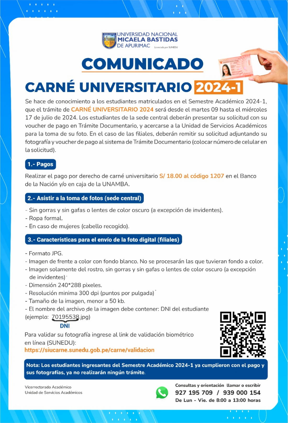 Inicia el trámite para tu Carné Universitario 2024 - 1