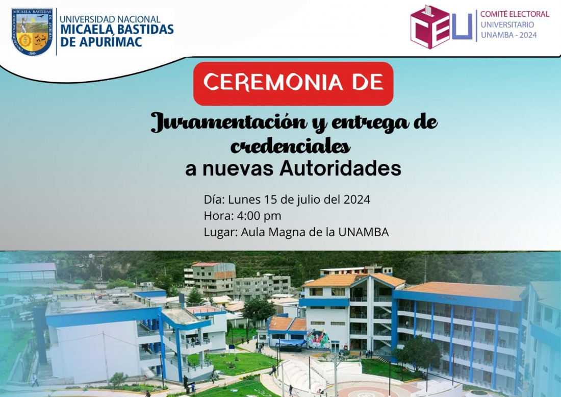 Se invita a toda la comunidad universitaria y poblaciópn en geenral a la ceremonia de entrega de Credenciales y Juramentación de nuevas autoridades universitarias de la UNAMBA