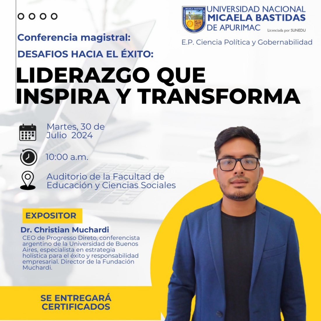 Te invitamos a la conferencia Magistral denominada "Desafíos hacia el éxito: Liderazgo que inspira y transforma", organizado por el curso de Imagen Política y el Centro Federado de la E.P. de Ciencia Política y Gobernabilidad