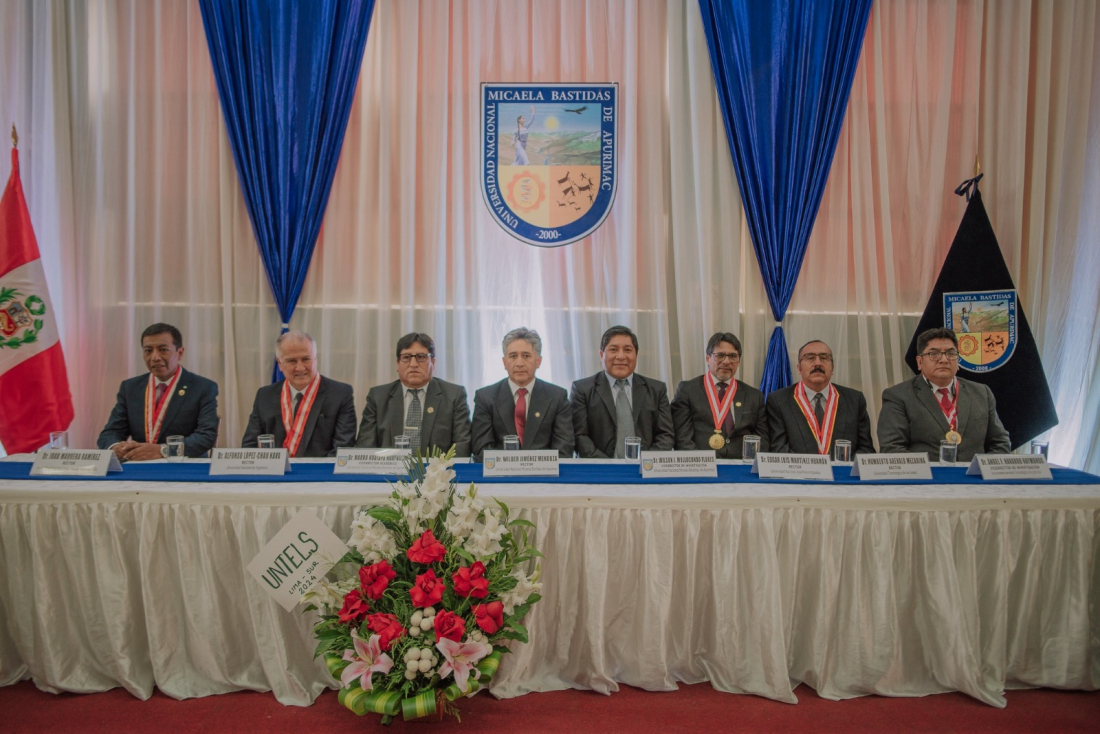 La mesa de honor estuvo conformada por el rector de la Universidad Nacional de Ingeniería (UNI) Dr. Alfonso López-Chau Nava, rector de la Universidad Nacional Amazónica de Madre de Dios (UNAMAD) Dr. Joab Maquera Ramírez, rector de la Universidad Nacional José María Arguedas (UNAJMA) Dr. Edgar Martínez Huamán, vicerrector de investigación de la Universidad Nacional Tecnológica de Lima Sur (UNTELS) Dr. Ángel Fernando Navarro Raymundo y el rector de la Universidad Tecnológica de los Andes (UTEA) Dr. Humberto Arévalo Mezarina.