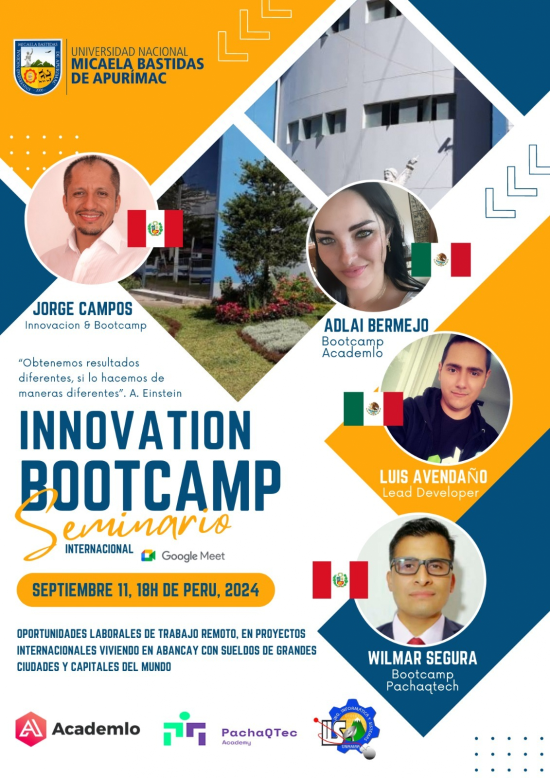 La Facultad de Ingeniería, Escuela Profesional de Ingeniería Informática y Sistemas invita a toda la comunidad al Seminario internacional "Bootcamp Innovation"