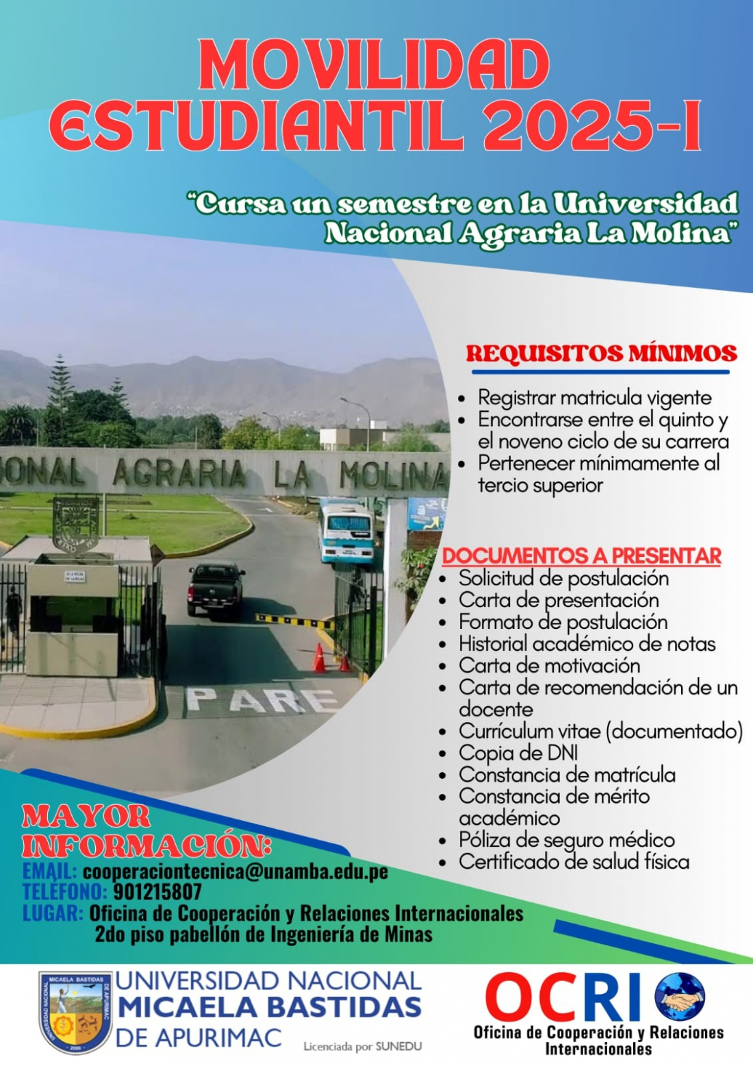 Programa de movilidad académica estudiantil presencial para el semestre 2025-I en la Universidad Nacional Agraria La Molina
