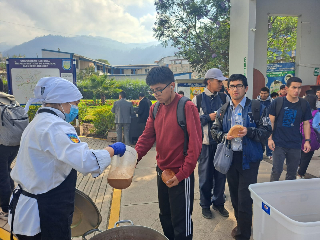 Lunes 21 de octubre. Desde tempranas horas de la mañana los alumnos ingresantes y estudiantes regulares de las diferentes escuelas profesionales de la Universidad Nacional Micaela Bastidas de Apurímac (UNAMBA), retornaron a clases para iniciar el semestre 2024-2, quienes fueron recibidos con una gran chocolatada y el clásico pan de pasa abanquino.