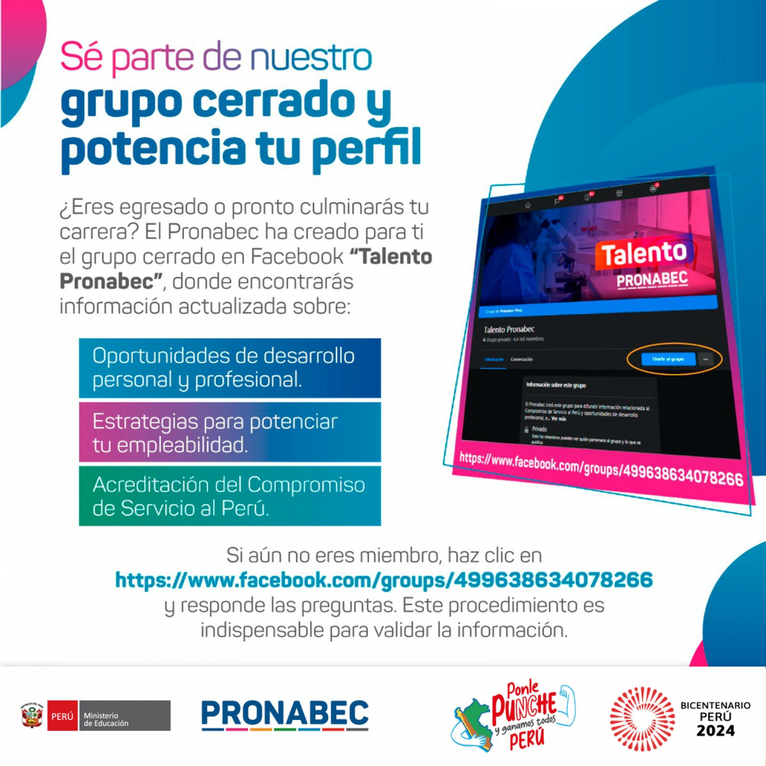 Unambino sé parte del grupo cerrado de Facebook de PRONABEC y potencia tu perfil