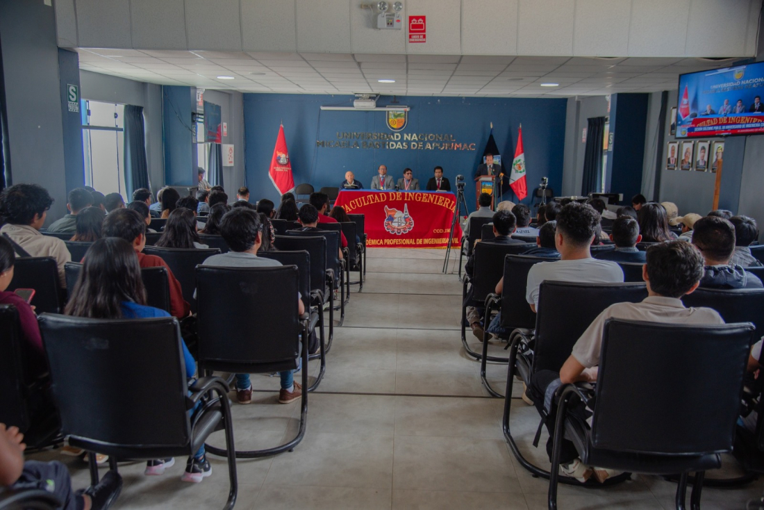 La sesión solemne fue presidida por el rector encargado de la UNAMBA, Dr. Mauro Huayapa Huaynacho, acompañado del decano de la Facultad de Ingeniería Dr. Fulgencio Vilcanqui Pérez, director de la Escuela Profesional de Ingeniería Civil Dr. Calixto Cañari Otero, director del Departamento Académico Dr. Leoncio Teófilo Carnero Carnero, docentes y estudiantes.