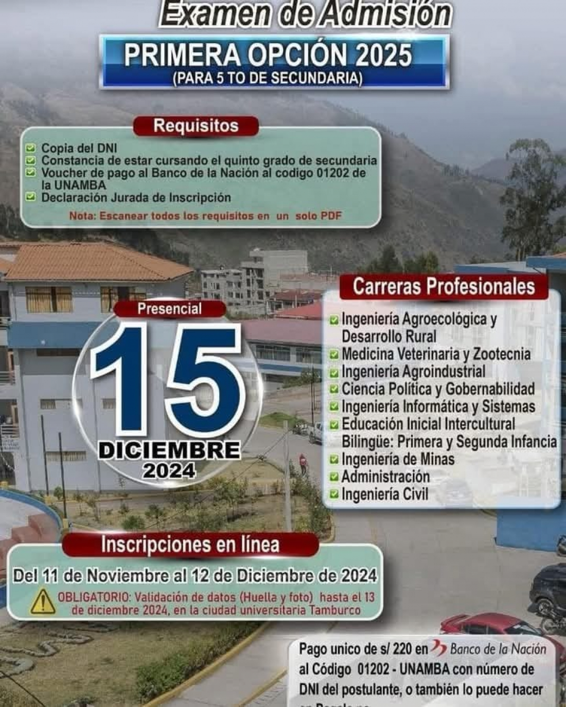 Convoca a Examen de Admisión Extraordinario I (Primera Opción) 2024