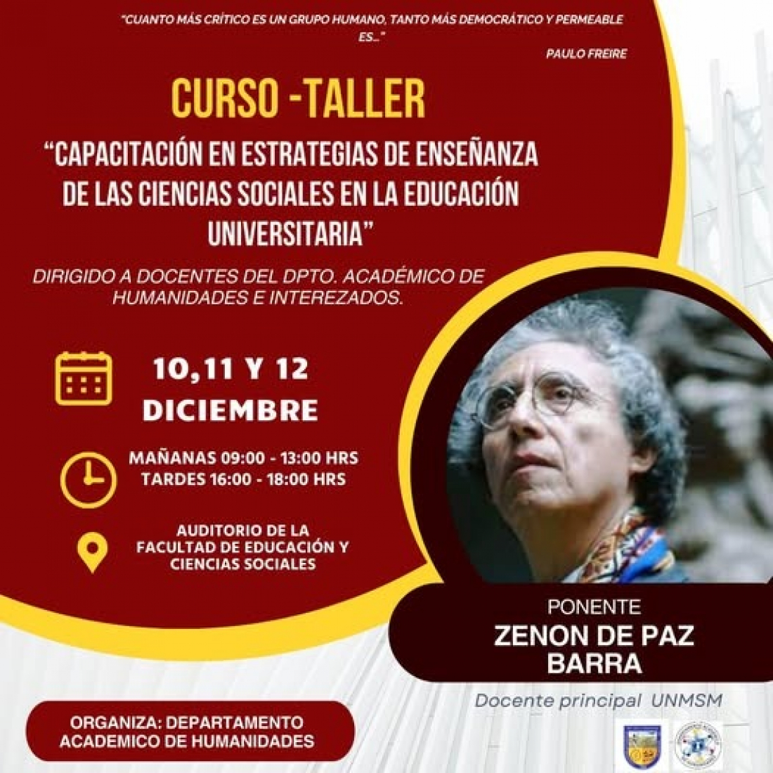 El Departamento Académico de Humanidades invita al curso taller "Capacitación en estrategias de enseñanza de las ciencias sociales en educación universitaria"