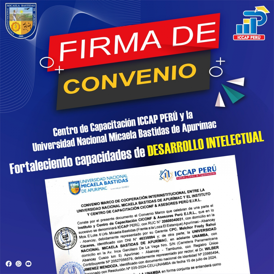 Firma de convenio entre la Universidad Nacional Micaela Bastidas de Apurímac (UNAMBA) e ICCAP PERÚ.