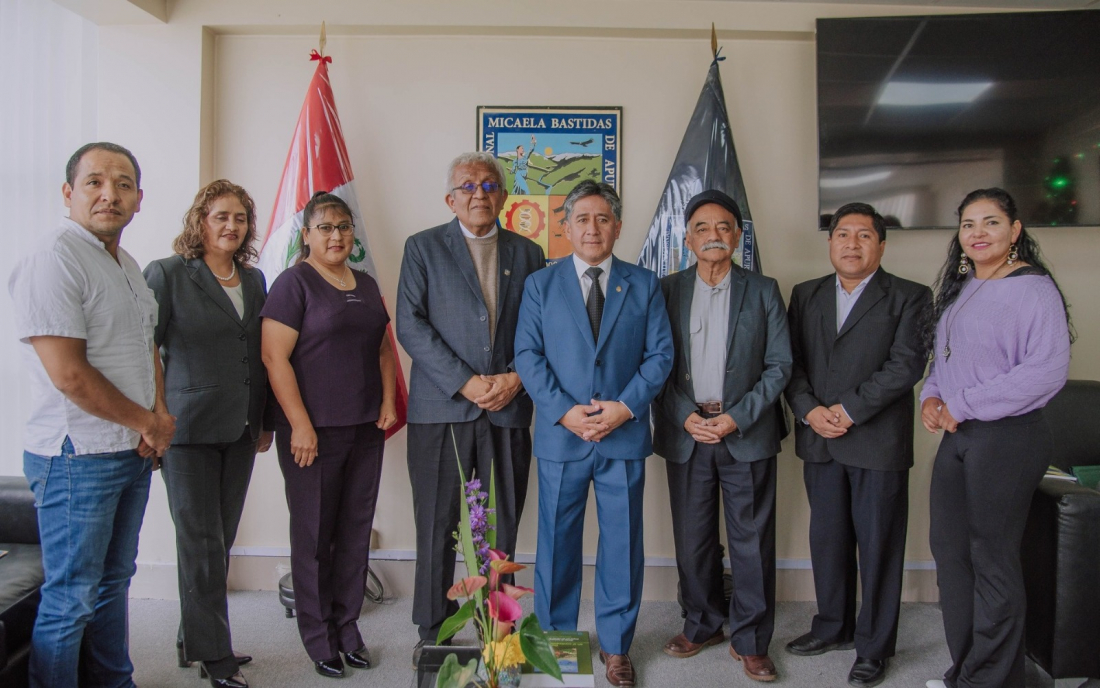 El Dr. Wilber Jiménez Mendoza, rector de la UNAMBA, junto al vicerrector de investigación Dr. Wilson Mollocondo Flores, directora de la escuela profesional de Ingeniería Agroecológica y Desarrollo Rural de la filial Vilcabamba, provincia de Grau, Mg. Aydee Kari Ferro, director de IDMA, directora de Cooperación Internacional Dra. Sandra Salazar Palomino y docentes, saludaron la visita de la autoridad académica de la Universidad La Molina; y mostraron su satisfacción por la buena voluntad de fortalecer los lasos educativos para el intercambio académico de docentes y estudiantes.