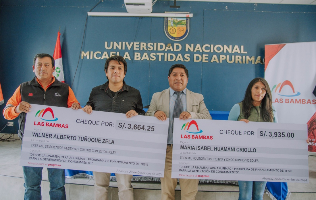 En mérito al convenio de cooperación interinstitucional suscrito entre la Universidad Nacional Micaela Bastidas de Apurímac (UNAMBA) y la minera Las Bambas, se realiza el programa de financiamiento de tesis para generación del conocimiento “Desde la UNAMBA para Apurímac”, dirigido a estudiantes de las diferentes escuelas profesionales.