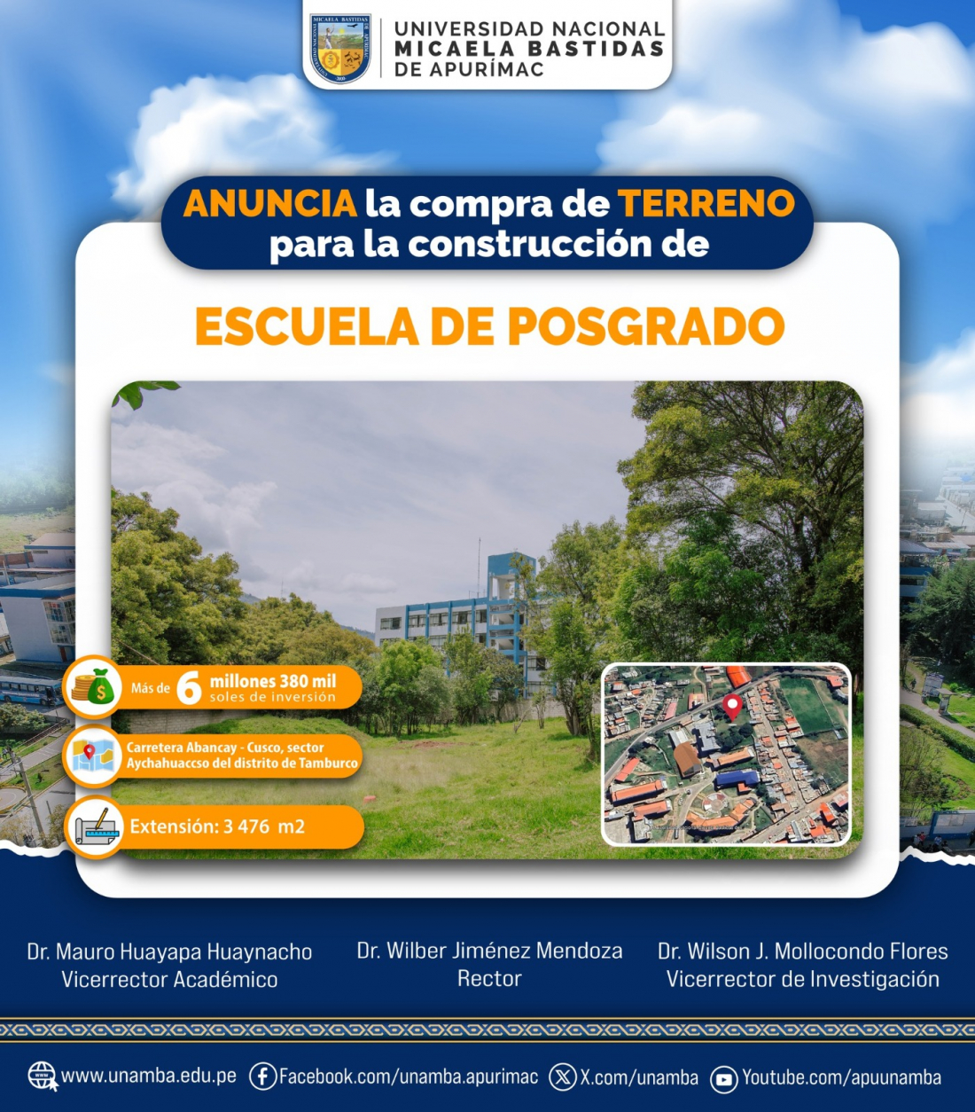 Anuncian la compra de terreno para la construcción de la Escuela de Posgrado de la UNAMBA.