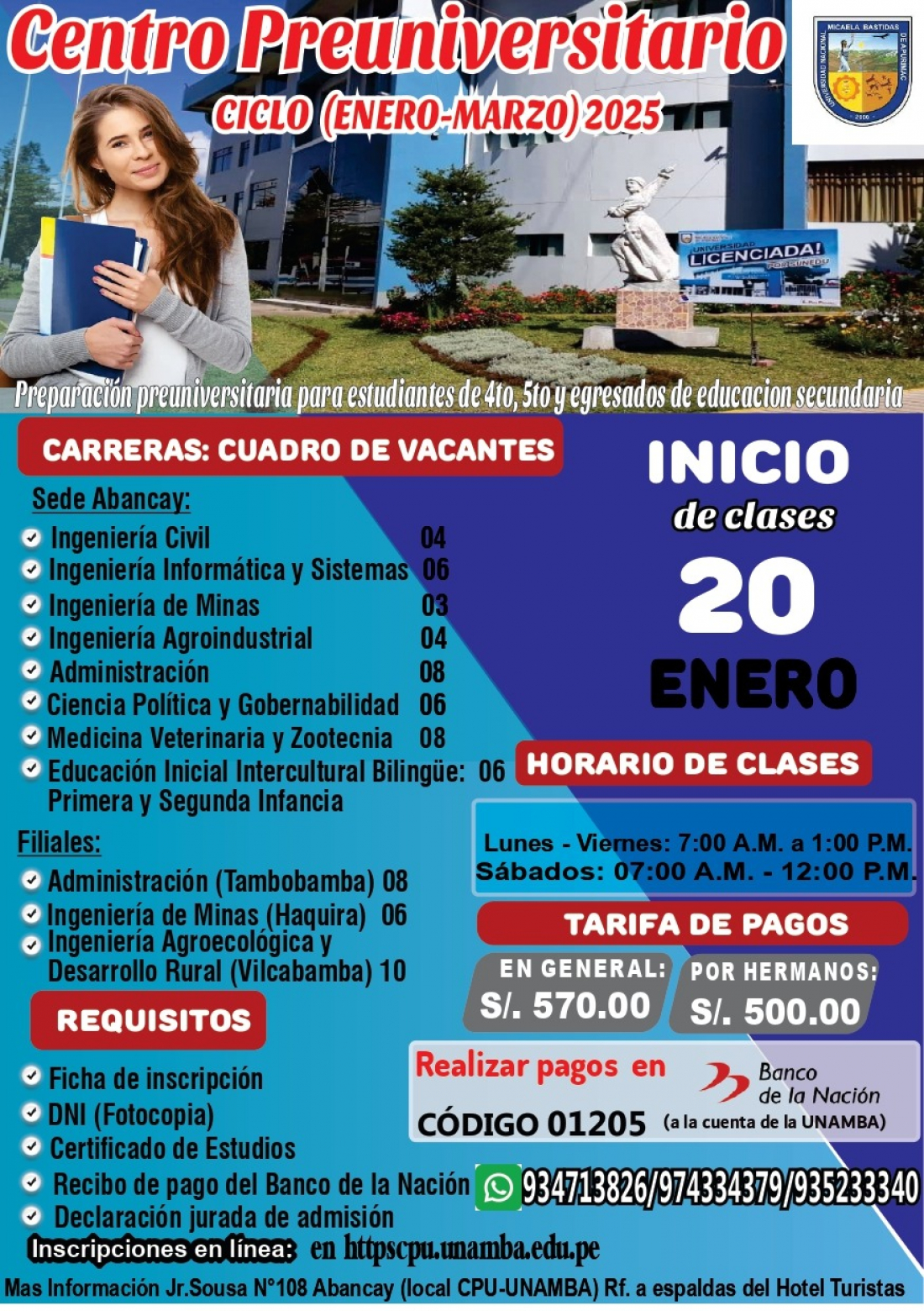 Oportunidades de Beca: Inscripciones abiertas para el CPU UNAMBA