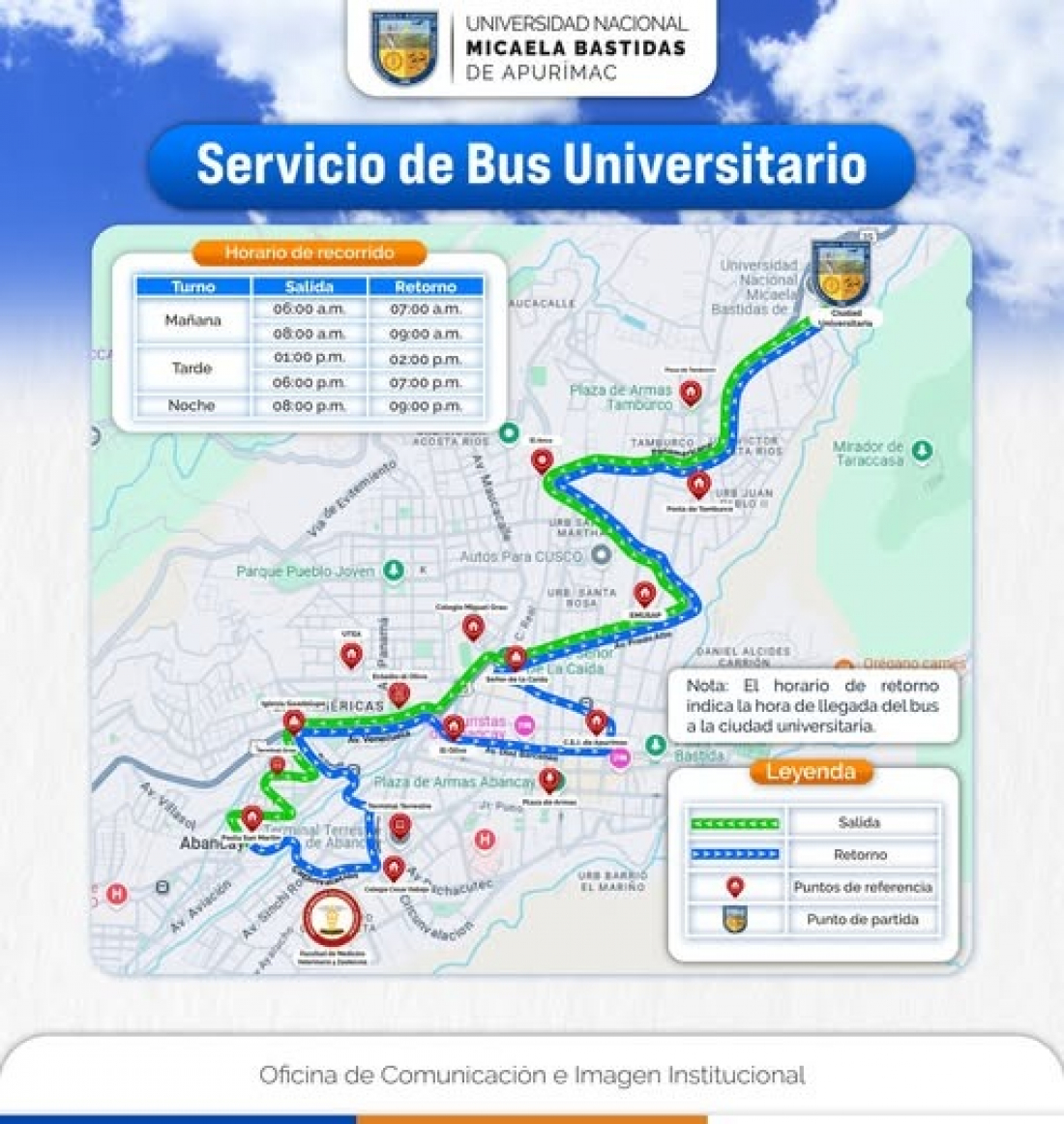 Servicio de transporte urbano del Bus Uniersitario de la UNAMBA