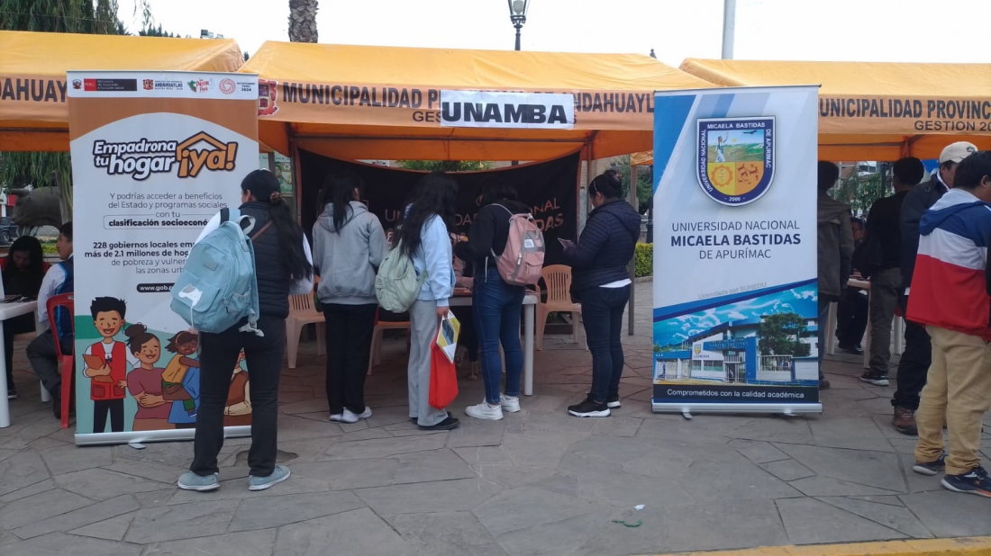Los estudiantes preseleccionados del concurso de becas y población interesada, tuvieron la gran oportunidad de conocer la oferta educativa de la UNAMBA, donde se les entregó folletos y documentación necesaria de cada una de las nueve escuelas profesionales, así como, los servicios que brinda la universidad a través del Centro Médico, comedor universitario, bus universitario para transporte urbano y viajes de estudios a nivel nacional, pasantías académicas en diferentes universidades del país y del extranjero; así elegir la UNAMBA para su formación profesional con las condiciones de calidad.