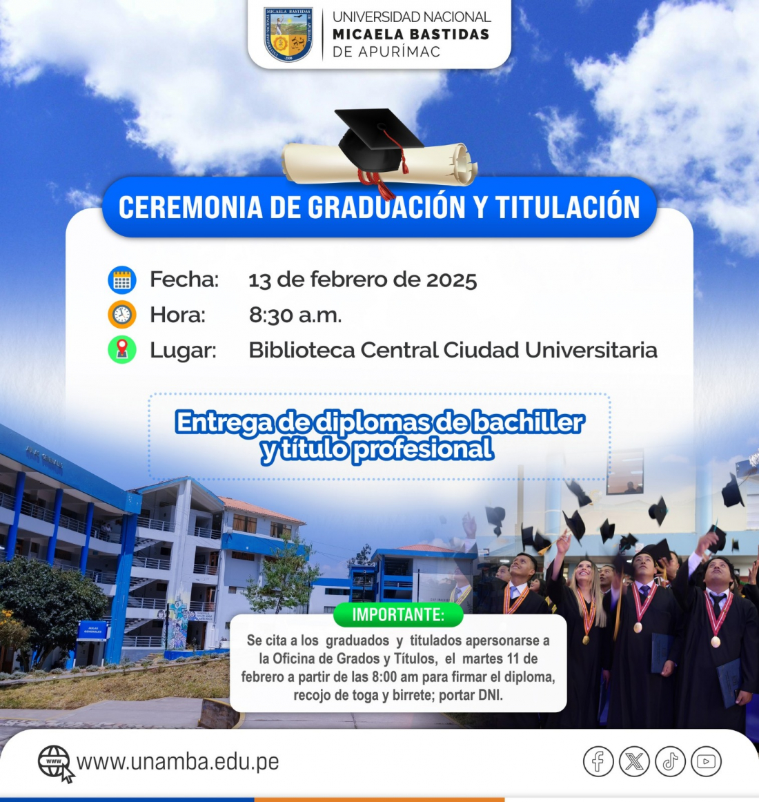 Se invita a la comunidad en general a la Ceremonia de Graduación y Titulación de la UNAMBA