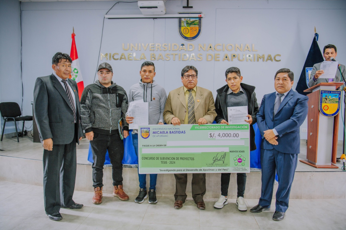 El Vicerrectorado de Investigación la Universidad Nacional Micaela Bastidas de Apurímac, encabezado por el Dr. Wilson Jhon Mollocondo Flores, Vicerrector de Investigación, realizó la entrega de subvenciones económicas a proyectos de tesis ganadores del año 2024, de las diferentes escuelas profesionales, enfatizando que esta subvención económica incentiva a los egresados de diferentes escuelas profesionales a realizar más investigación.