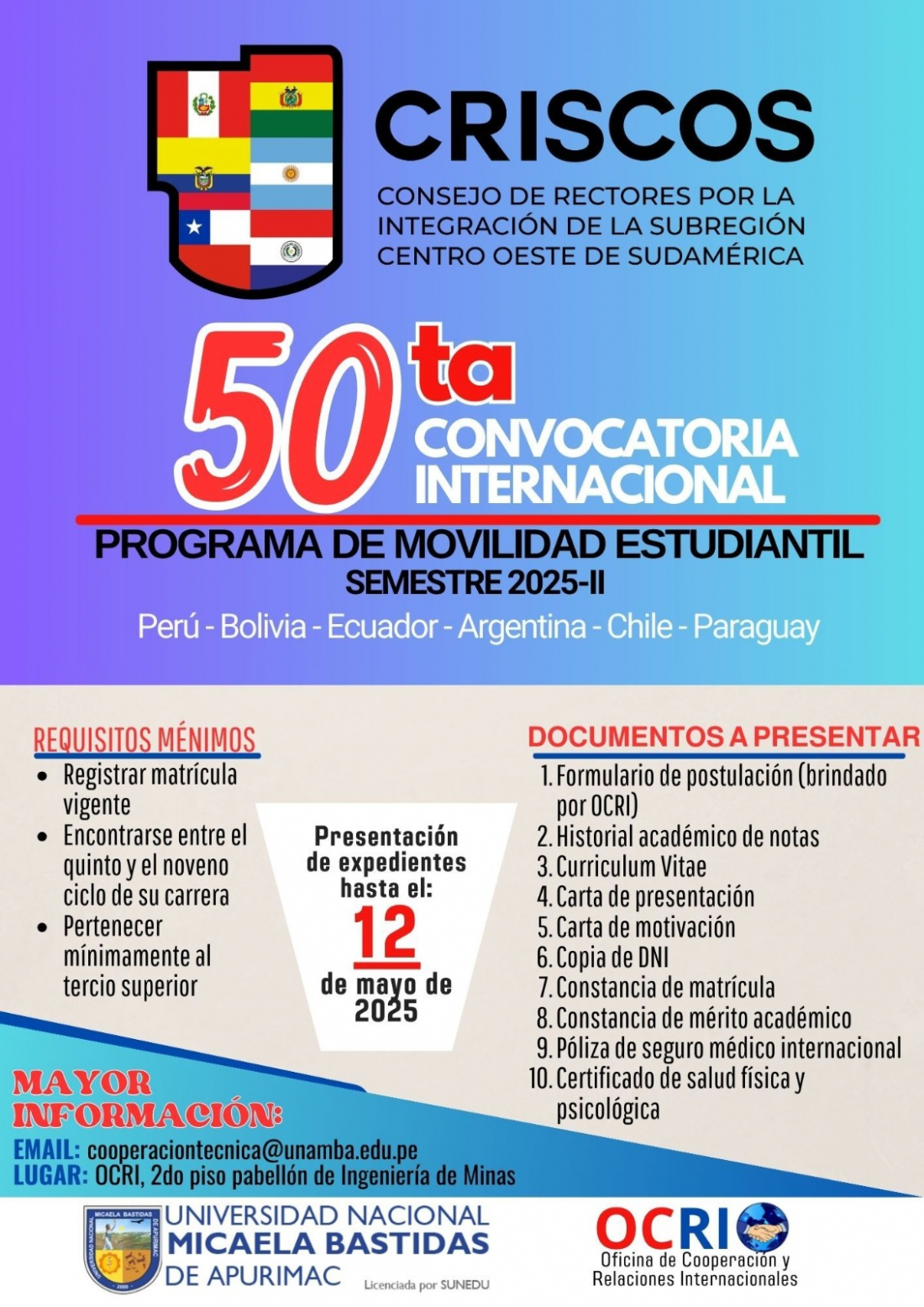 Programa de Movilidad Estudiantil (PME) 50ta convocatoria internacional - Junio 2025