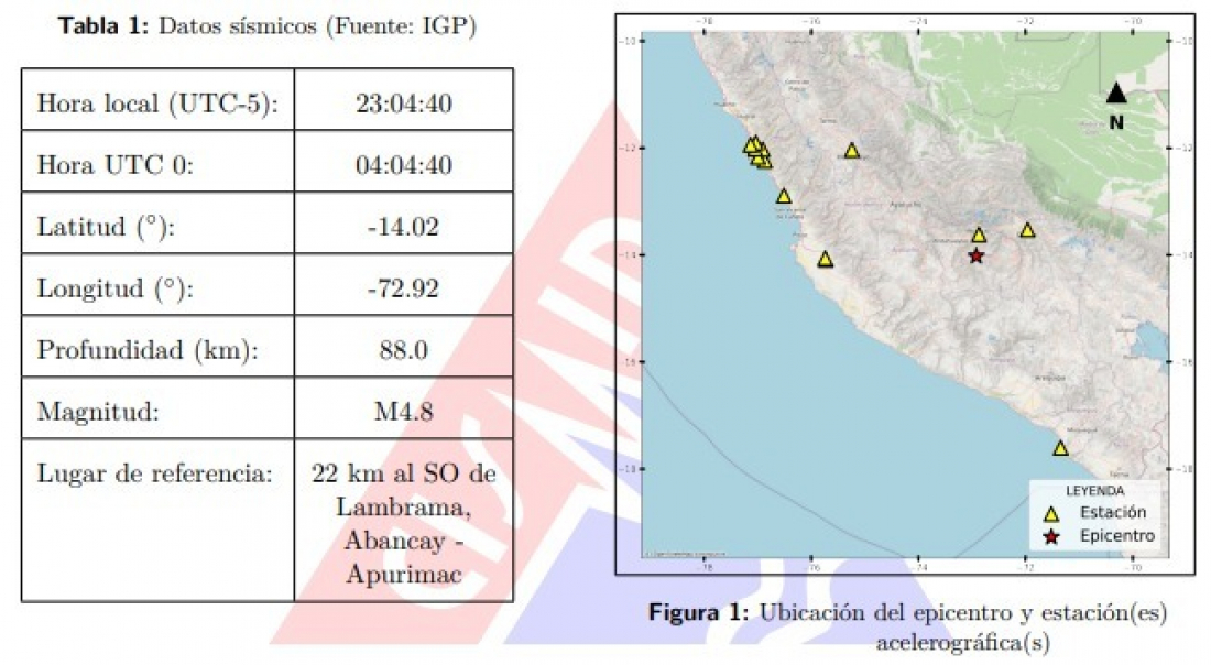 El jueves 13 de marzo del 2025, a las 23:04 horas, se registró un sismo de magnitud 4.8 en la escala de Richter con epicentro a 22 kilómetros al suroeste de Lambrama, Abancay – Apurímac, registrado por la Estación Acelerográfica de la Universidad Nacional Micaela Bastidas de Apurímac (UNAMBA).
