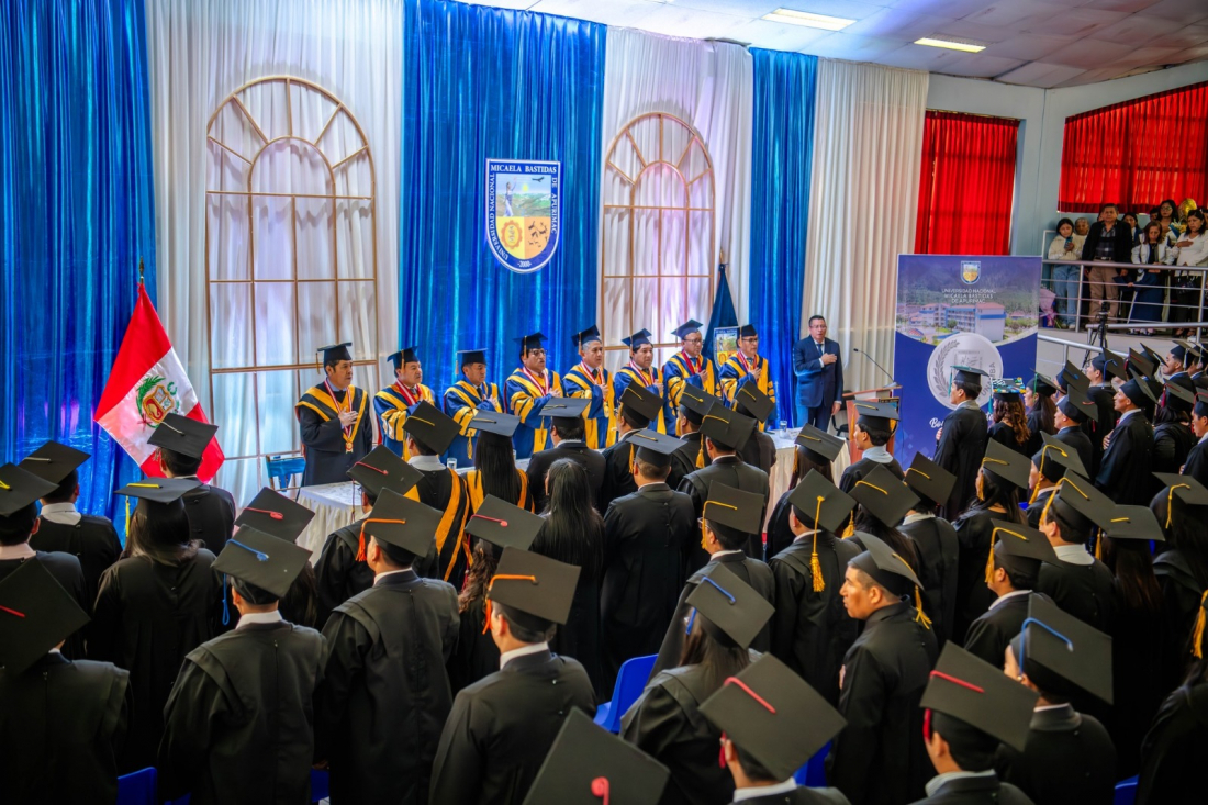 Con una concurrida asistencia de autoridades universitarias, egresados y familiares, se realizó el martes 13 de mayo del año en curso, el acto oficial y solemne de la ceremonia de graduación y titulación para la entrega de grados académicos de bachiller, títulos profesionales y grados académicos de maestro de la Universidad Nacional Micaela Bastidas de Apurímac (UNAMBA).