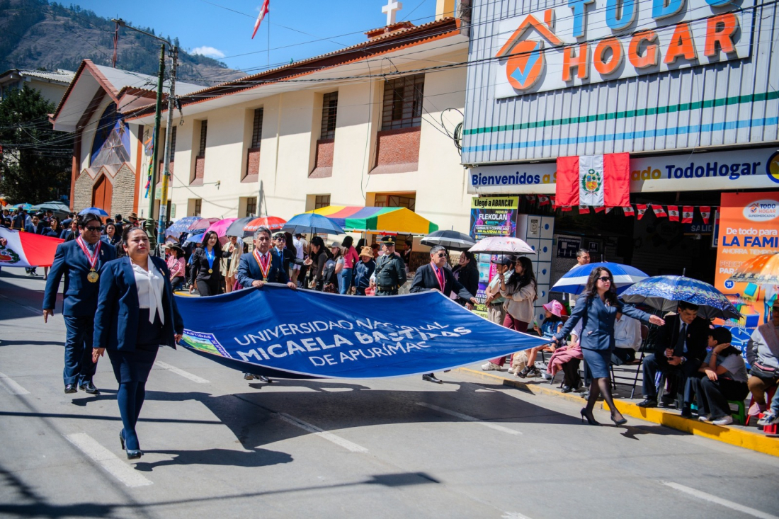 Durante la ceremonia central la máxima autoridad universitaria, Dr. Wilber Jiménez, hizo entrega de la moción de saludo al Prefecto Regional Edwin Carpio Challque, expresando el compromiso académico y social a fin de impulsar un mejor futuro para la comunidad apurimeña, así como coadyuvar con el desarrollo, progreso y engrandecimiento del país; posteriormente se hizo presente en la pista de desfile la delegación unambina que una vez más llevó la escarapela bicolor que honra la memoria y el legado de quienes con su sacrificio nos dieron patria, paz y libertad, fortaleciendo la justicia social, el sentido de unidad y orgullo nacional.