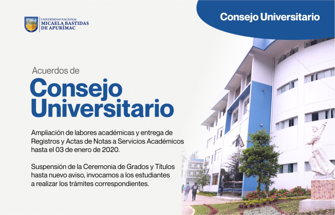 Se comunica a la comunidad universitaria los acuerdos de Consejo Universitario de la Universidad Nacional Micaela Bastidas de Apurímac: