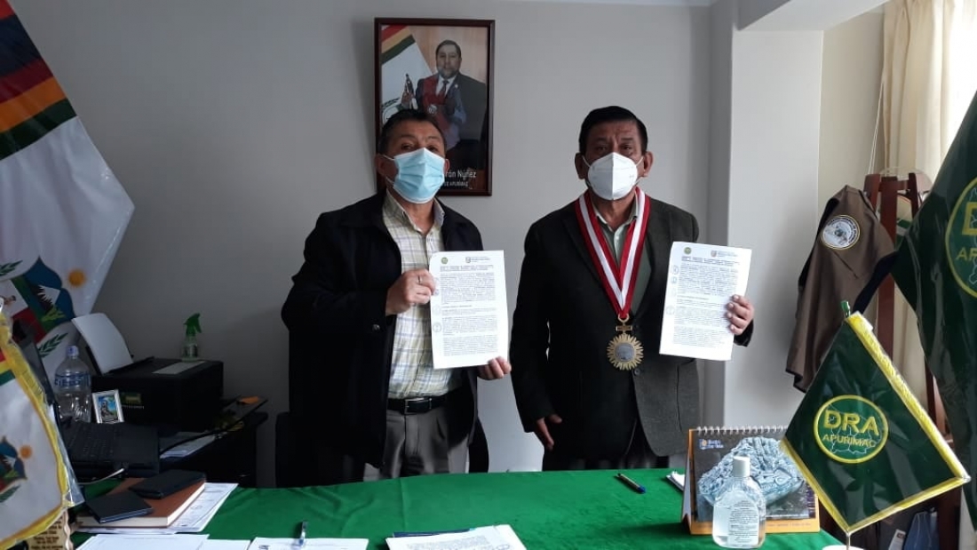 Esta alianza fue firmada por Dr. Freddy Vega Loayza, rector de la Universidad Nacional Micaela Bastidas de Apurímac (UNAMBA) y el Ing. Danilo Valenza Calvo, director de la Dirección Regional Agraria Apurímac; acto realizado el martes 13 de abril del presente, con el objetivo de desarrollar acciones conjuntas que beneficien a las partes, en aspectos de capacitación, investigación, prácticas preprofesionales y profesionales, elaboración, ejecución y evaluación de proyectos productivos en la región.
